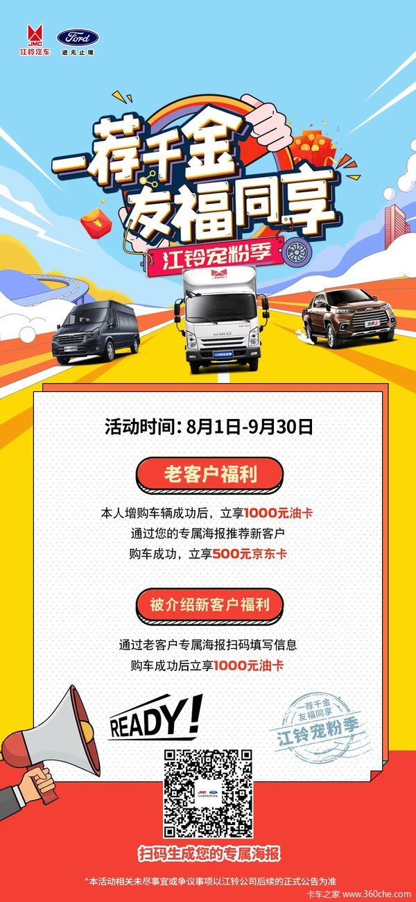当前位置: 卡车之家 >卡车经销商 > 东莞市江铃汽车销售 > 促销新闻 > 江铃宠粉季丨大波福利来袭,500京东卡、1000油卡等你来领!