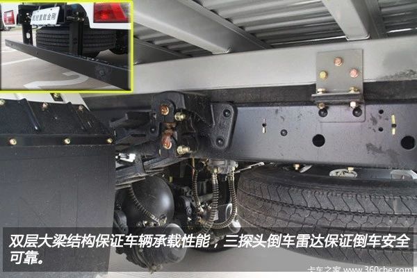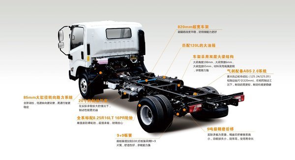 载金刚的底盘被誉为江铃最强轻卡底盘,主要体现在:板簧、大梁、轮胎、气刹