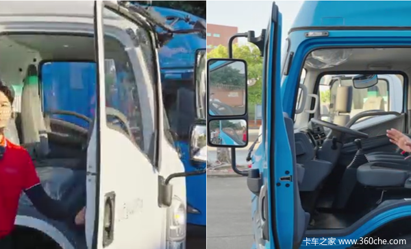 对比两车驾驶室车门开门角度,显而易见凯运+的开门角度更大,上下车门更方便。