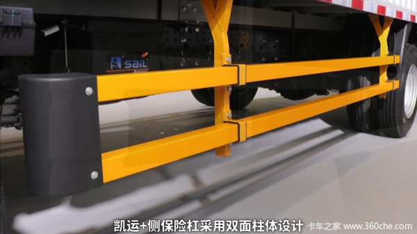 KV100侧保险杠采用单面设计;凯运+侧保险杠采用双面柱体设计,双面侧保险杠防护性能会比较好。