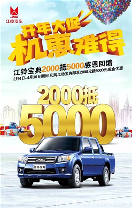 即日起至4月30日,凡购买江铃宝典,即享2000元抵5000元现金优惠!