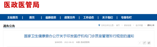 国家卫生健康委办公厅关于印发医疗机构门诊质量管理暂行规定的通知