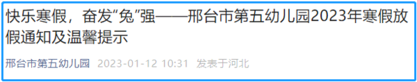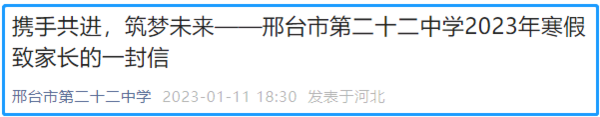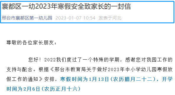 邢台寒假放假时间为