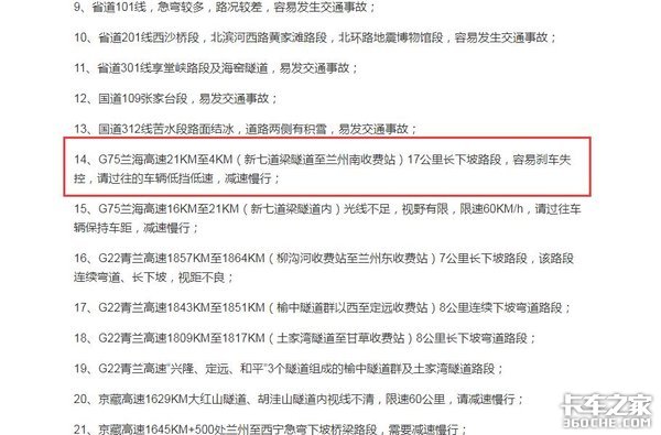 我们可以看到,其实早在春运期间,兰州交警指挥中心也有发文提示过,在G75兰海高速21公里至4公里(新七道梁隧道至兰州南收费站)17公里长下坡路段,容易刹车失控,请过往车辆抵挡低速,减速慢行。