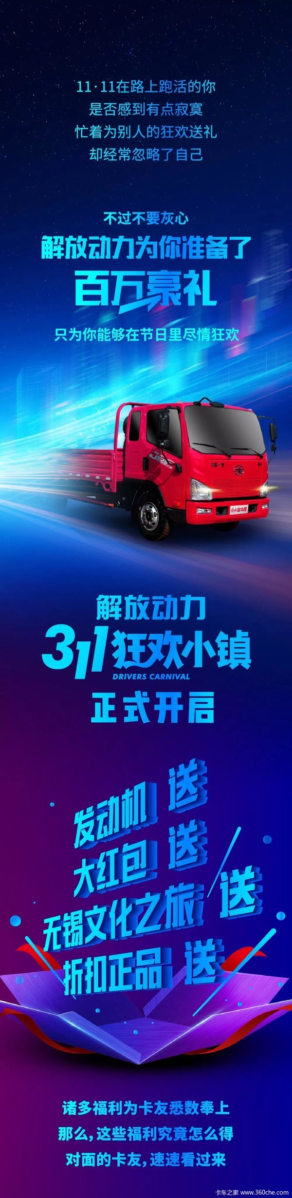 当前位置: 卡车之家 >卡车经销商 > 沧州康恩迪汽车销售(一汽解放轻卡) > 促销新闻 > 助推:解放动力发动机免费送丨百万豪礼,尽在311狂欢小镇!