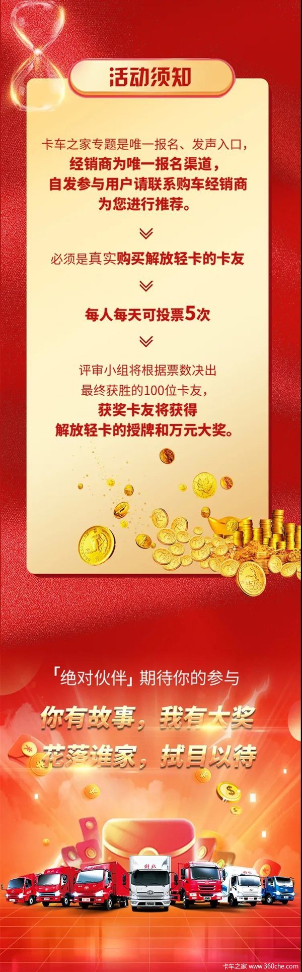 当前位置: 卡车之家 >卡车经销商 > 沧州康恩迪汽车销售(一汽解放轻卡) > 促销新闻 > 第四届【解放轻卡 绝对伙伴】燃情开启,快来报名吧!