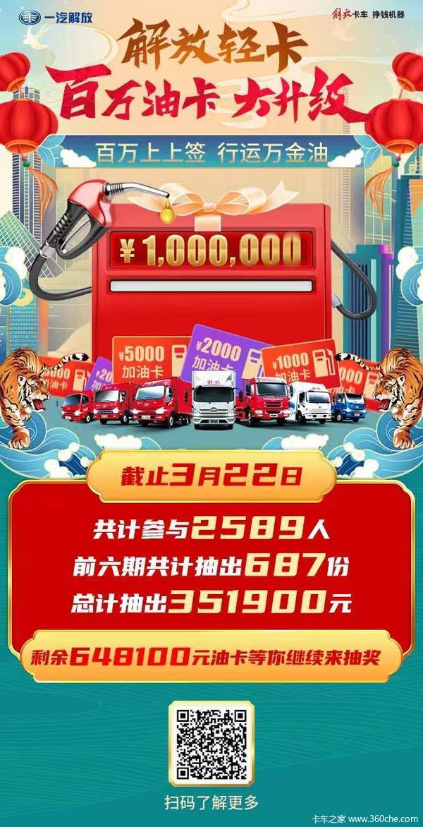 当前位置: 卡车之家 >卡车经销商 > 沧州康恩迪汽车销售(一汽解放轻卡) > 促销新闻 > 【解放轻卡】百万上上签,行运万金油!