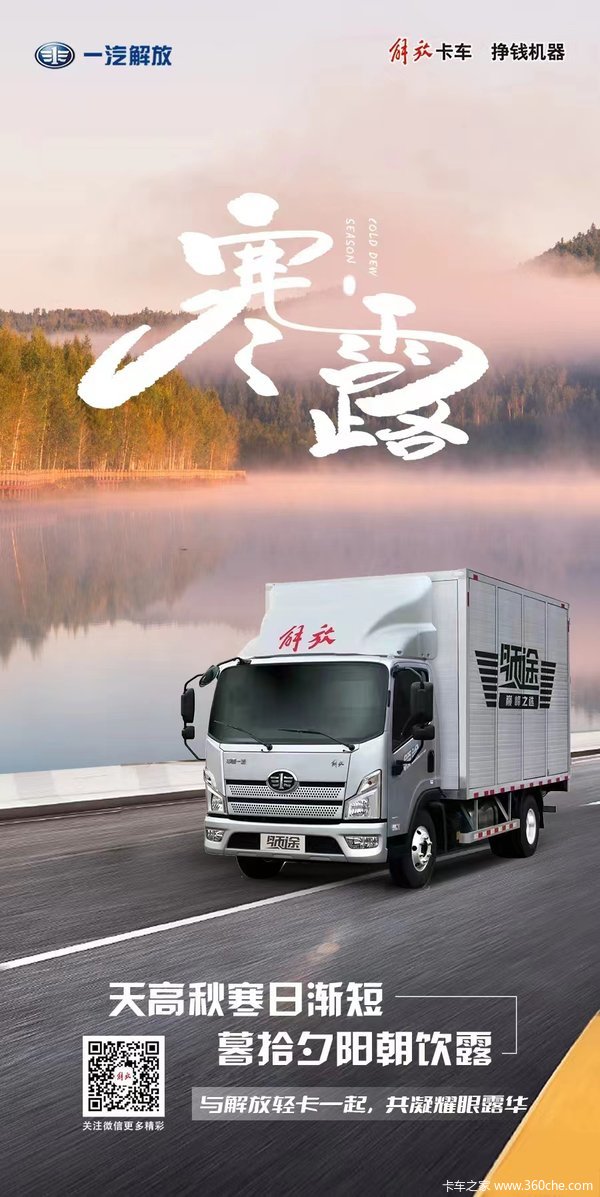 当前位置: 卡车之家 >卡车经销商 > 沧州康恩迪汽车销售(一汽解放轻卡) > 促销新闻 > 【解放轻卡】天高秋寒日渐短,暮拾夕阳朝饮露