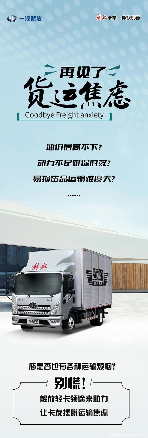 当前位置: 卡车之家 >卡车经销商 > 沧州康恩迪汽车销售(一汽解放轻卡) > 促销新闻 > 【解放轻卡】再见了 , 货运焦虑 !