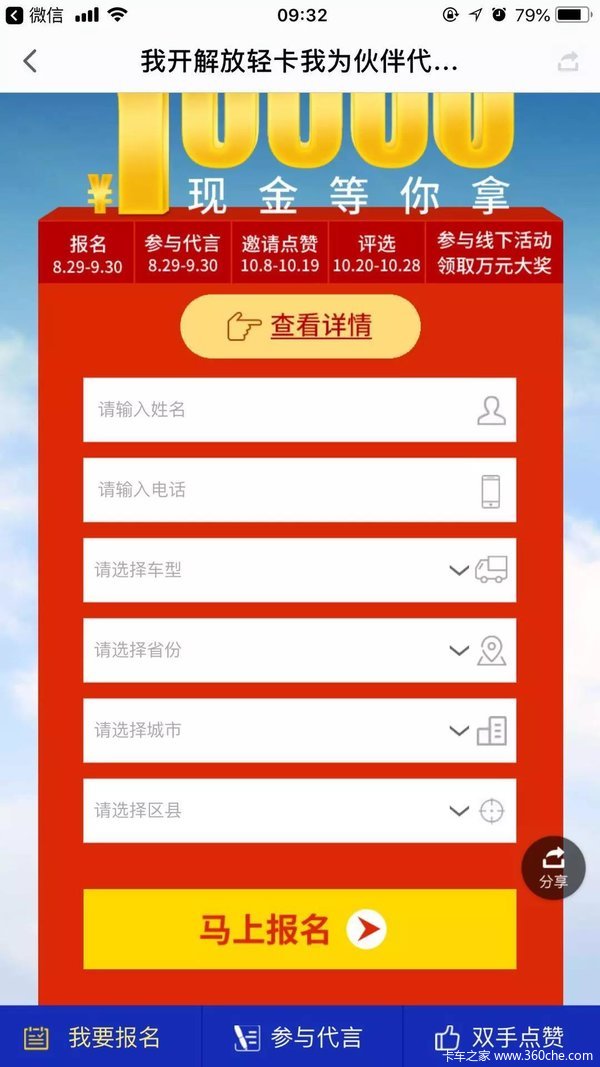 选择车辆(参与代言的用户须是真实的购买解放轻卡的卡友)