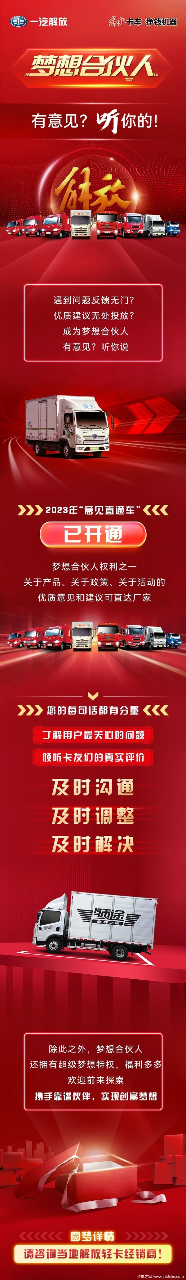 当前位置: 卡车之家 >卡车经销商 > 沧州康恩迪汽车销售(一汽解放轻卡) > 促销新闻 > 【解放轻卡,梦想合伙人】有意见?听你的!