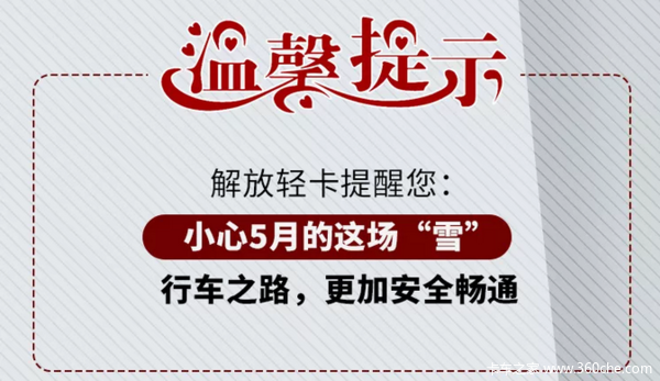 当前位置: 卡车之家 >卡车经销商 > 沧州康恩迪汽车销售(一汽解放轻卡) > 促销新闻 > 【解放轻卡提醒您】小心!这五月的“雪”