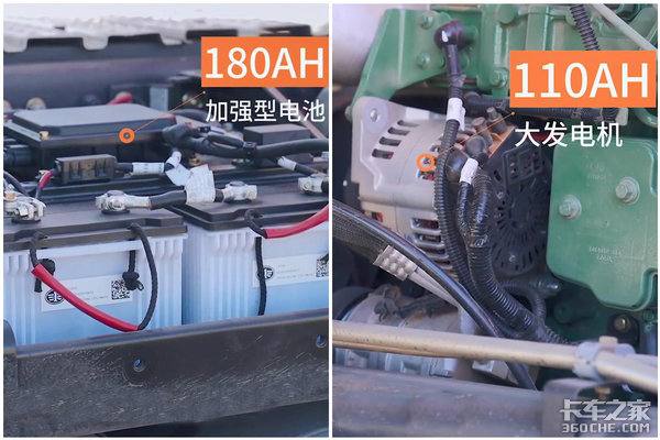 为满足整车的用电需求,试驾车新增180Ah加强型蓄电池,电池使用时间更长,使用寿命增加一倍。并且车辆的发动机电流提升至110Ah,可靠性提升30%,为车上电器使用提供保障,充分满足车上电器和蓄电池充电的使用需求。