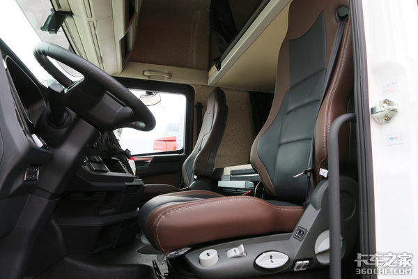 打开车门,首先看到的是同样是德味的格拉默空气减震座椅,而且这个座椅配备通风加热,冬暖夏凉,也十分适合日行千里的牵引车司机。冷天不冷,夏天不闷,司机更舒服,工作更有尊严。