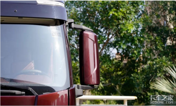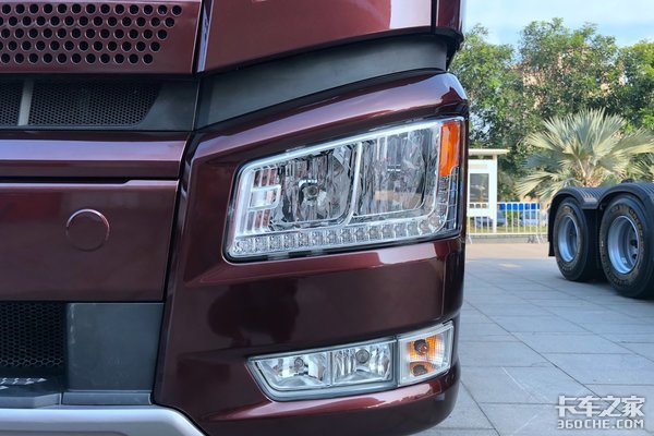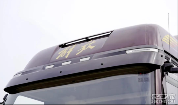 车头的上方配备了导流罩,可以在一定程度上降低风阻,提高燃油消耗率。下面的宽体黑色遮阳板可以很好的防止阳光对车上人员的视线造成影响,遮阳板的中间位置及两侧配置了示廓灯,增添夜间行车安全性。