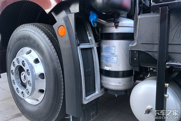 油箱方面采用了双500L铝合金油箱,并且配备了油箱防盗,当油箱防盗开启时,一旦有人靠近油箱,车辆就会马上发出警报声提醒驾驶员注意。