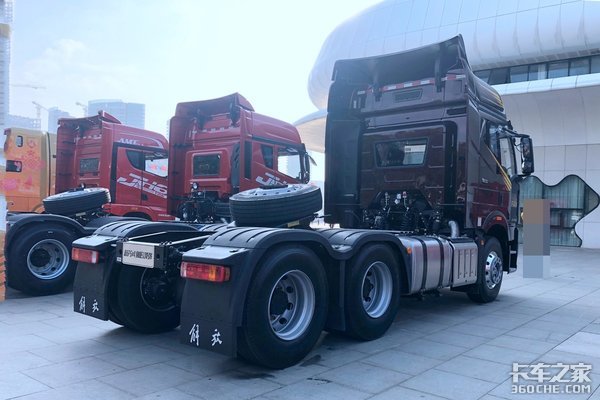 挡泥板支架、大灯支架、后桥轴头等均采用了铝合金材质,经过这一系列的轻量化处理,这款3.0版本的J6P自重仅为8.2吨。