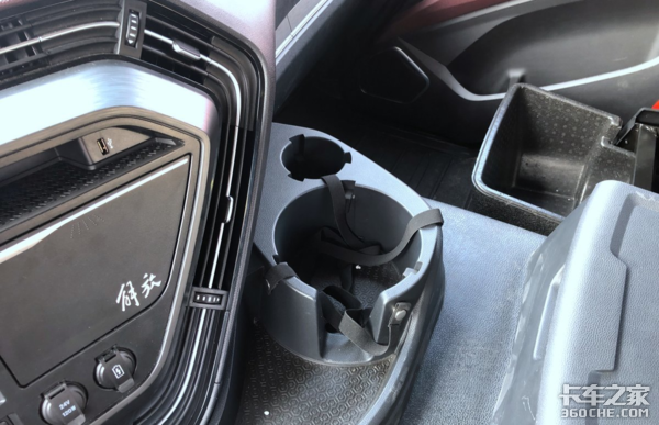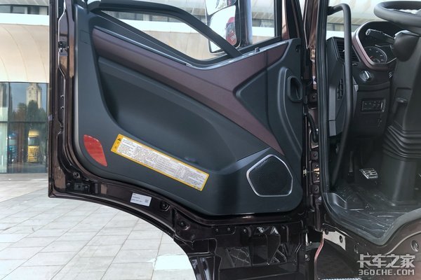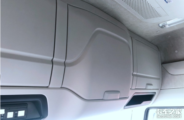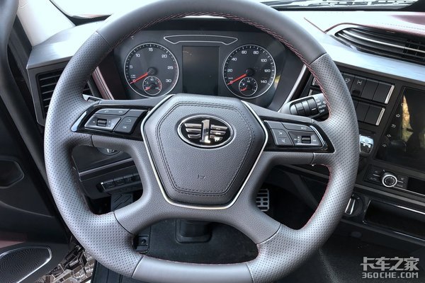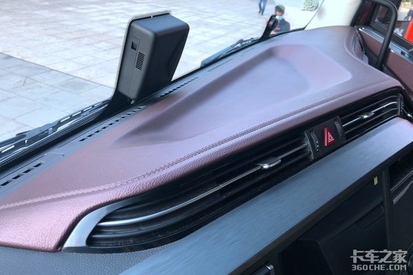 中控台上面带有双缝线设计软包材料,目前国内牵引车更多的还是采用硬塑材质,车中采用这样软包工艺的可谓是少之又少。