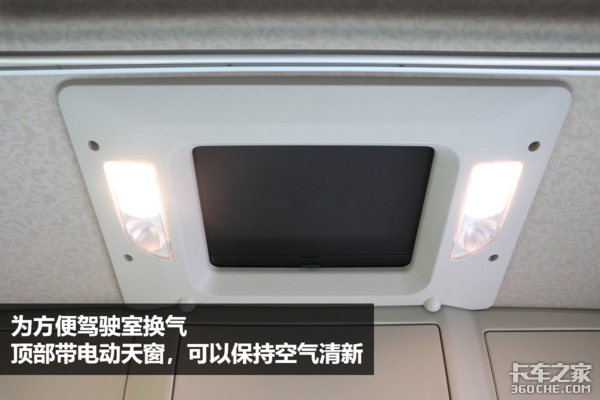 驾驶室的密封性相对比较好,这就会导致车里如果有异味,会很难挥发掉,很多卡友可能都经历过脚臭、烟味等的刺激,解放J7的驾驶室顶部,带有电动天窗,可以加快驾驶室内部空气的流动。