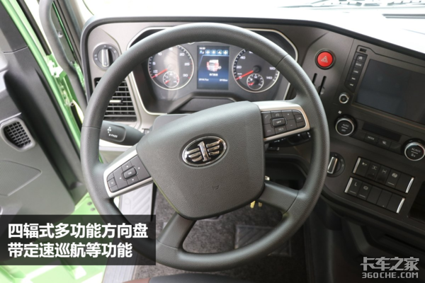 虽然说AMT已经解放了卡友的左脚右手,但是在高速等路况信息较为良好的条件下开车时,还可以打开四辐式多功能方向盘上面的定速巡航功能,车辆可以保持在恒速状态运行,更进一步缓解开车时的压力。