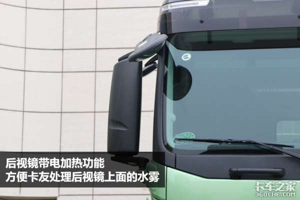 当我们在雨雪天气下行驶时,后视镜上面容易凝聚水雾,影响卡友的行车视线,这款解放J7带有后视镜电加热功能,可以方便卡友去除掉后视镜上面的水雾。