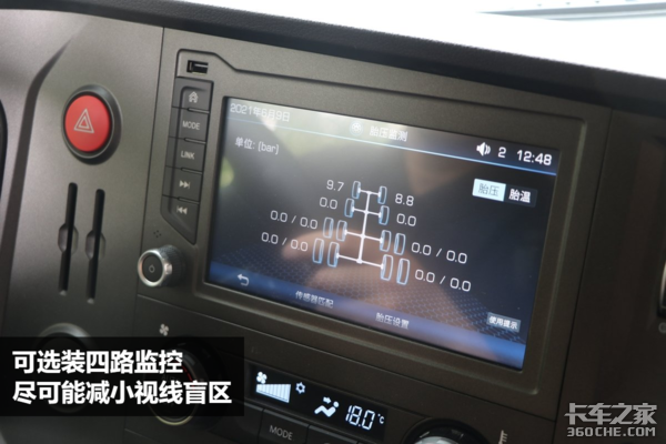 很多卡友都遇到过车辆突然爆胎的情况,导致车辆只能等待救援,不仅花费了高昂的维修费,还影响到了运输的时效性,其实爆胎和气压有一定的关系,这款解放J7带有胎压监测系统,卡友们可以随时发现胎压的异常情况,降低轮胎突然爆胎的风险。