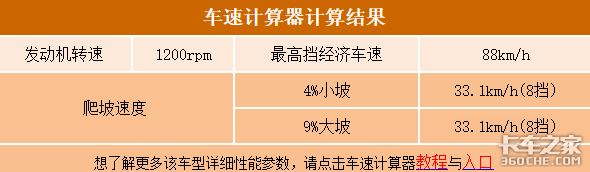 冷链运输比较追赶时效,标载运输下在高速上跑运输时,经卡车之家时速计算器计算得知,发动机在1200r/min时,车辆就可以达到经济车速88km/h。