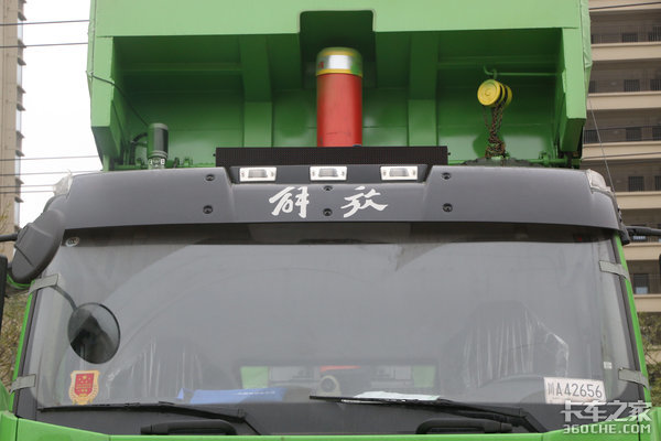 车顶安装有黑色遮阳罩,可减轻行车时阳光直射对驾驶员视线的干扰。遮阳罩上方安装有车速指示灯,一直以来解放都是车速指示灯的忠实拥趸,J6全系车型上均有这样的配置。遮阳罩两侧布置着示廓灯,夜晚行车时可以起到很好的提醒作用。