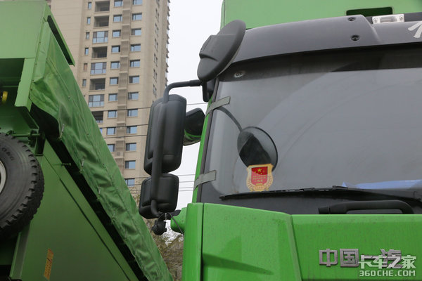 外观方面,这款J6P身上解放家族气息十分浓厚,整体造型基本沿袭了解放J6系列的经典外观。车身饰以市政工程绿的涂装,看起来十分养眼。驾驶室采用平顶设计,很好地照顾了整车通过性。
