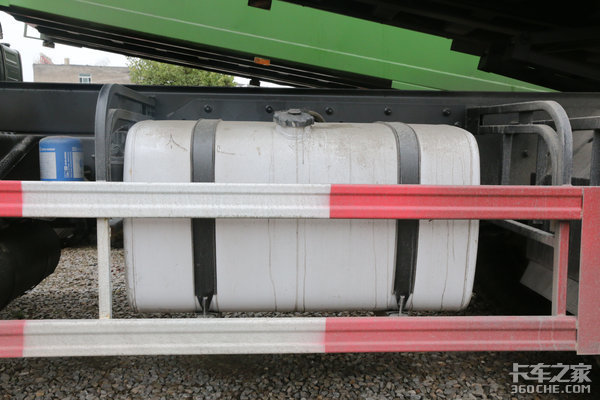油箱容积为400L,满足中短途运输的油耗需求。油箱材质为钢,遭受冲击时油箱不易破损变形。油箱外侧还设计有防护栏。