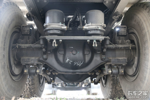 车桥方面,前桥采用2055前轴,后桥采用Φ300铸钢轮边减速桥,后桥速比为5.263。轮边减速桥承载能力强悍,且离地间隙较大,给整车带来更强的通过性。