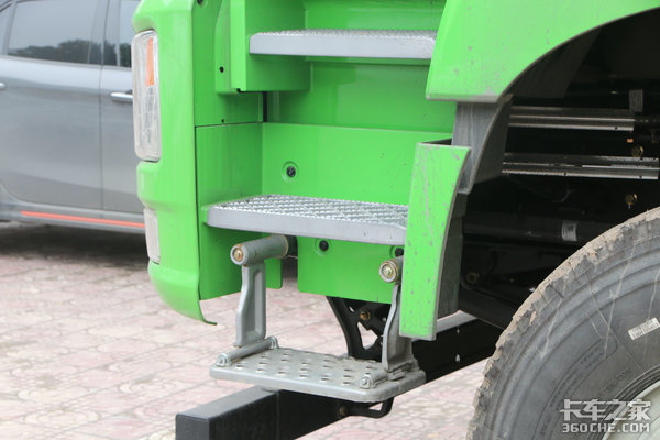 由于山区版车型离地间隙特别高,驾驶室在两级蹬车踏板的基础上,还额外设计有延可活动蹬车踏板,行车过程中可活动蹬车踏板遇到砂石等障碍物会左右移动,避免相撞变形。