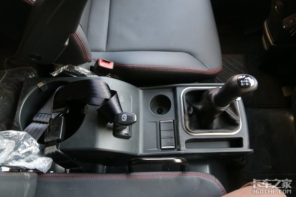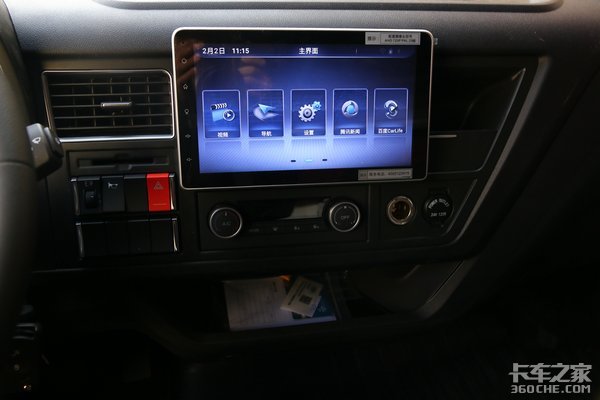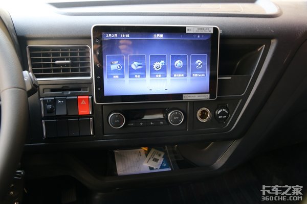 中控台部分,这款车采用靠近驾驶员的设计,更方便人机之间的交互。整个仪表盘由一块10英寸的车载大屏、电动空调、多功能按键以及两个120W的点烟器组成,其中一个点烟器可自己安装配件改成插口,满足卡友日常的用电需求。
