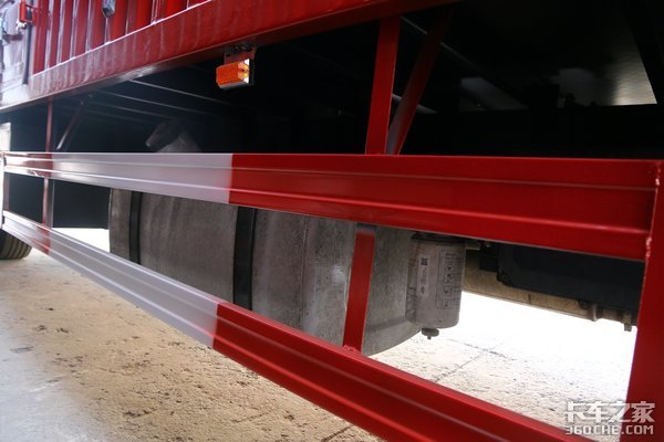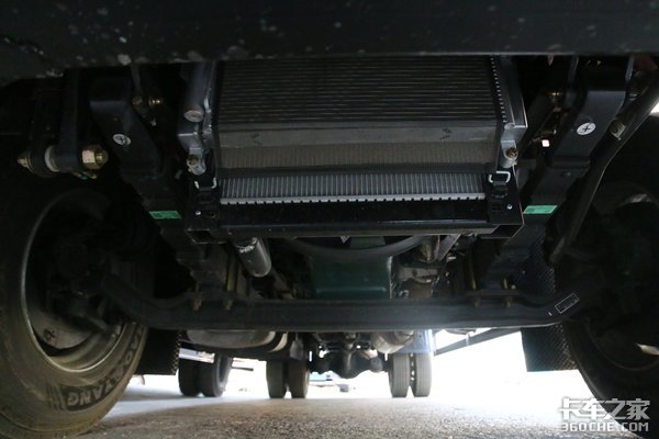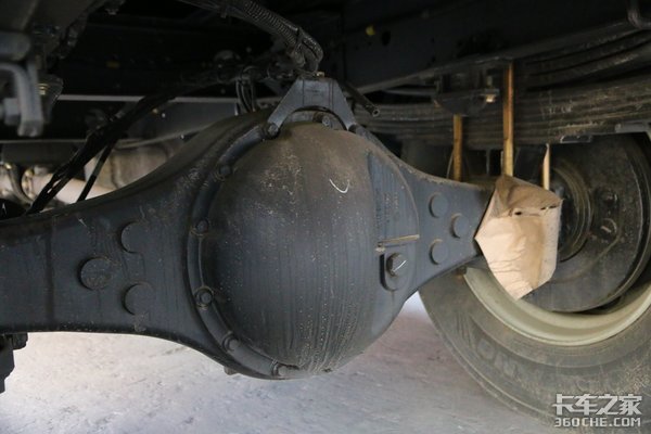 这款车的后桥采用的是378冲焊桥,后桥速比为4.333,采用前7后7 6的钢板弹簧悬架,有效的保障了车辆的承载能力。实拍车的轮胎选择的是朝阳真空胎,规格为275/80R22.5。装配有一个容积为300L的钢制油箱。