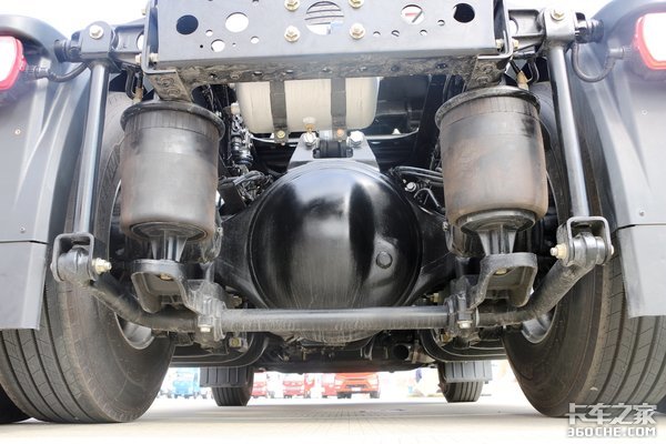 这款车在悬架形式采用前两片钢板弹簧 空气悬架的形式,对于干线物流运输来说,最看重的就是时效性。而空气悬架的好处就是可以更快的完成甩挂操作,提高运输效率。