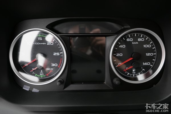 仪表盘采用了解放卡车中比较新式的双盘指针,左右为大指针,分别显示转速、水温和时速、燃油量。