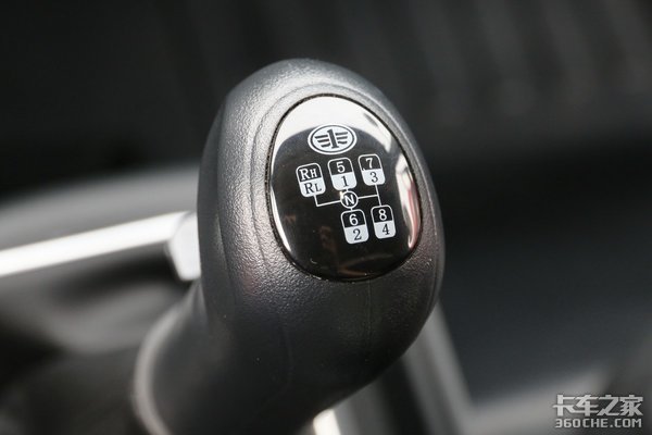 匹配的变速箱则是一汽解放CA8TAX090M,为8挡位手动换挡方式,头挡速比是9.569,最高挡速比是0.735。这款变速箱的换挡逻辑比较清晰,换挡比较平顺。安装在驾驶室处的换挡杆,位置以及高度都比较符合人机工学理念。