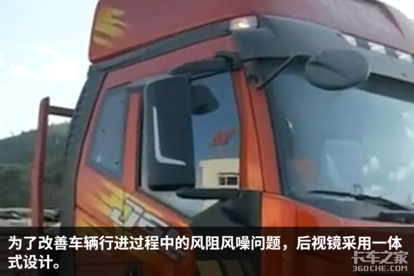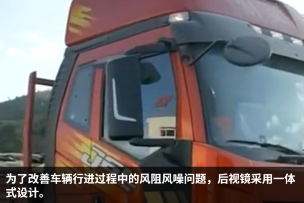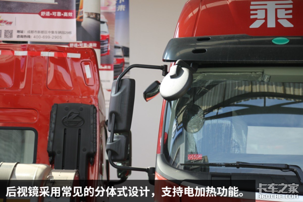 后视镜采用比较常见的分体式设计,相比一体式后视镜虽然风阻风噪表现落于下风,不过在后期维修或更换零部件时成本会更低。为了方便卡友们在雨雾天气行车时及时清除镜面水汽,保证视野清晰,这款乘龙H5的后视镜同样支持电加热功能。