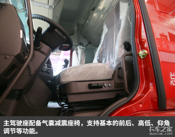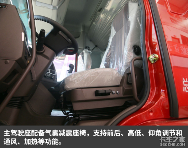 在主驾驶座椅的配置方面这款乘龙H5配备了支持前后、高低、仰角调节等功能的气囊减震座椅,为了避免座椅夏天太烫、冬天太冰影响驾乘体验,还加入了通风加热功能。座椅右侧设计有扶手,驾驶过程中能大幅减轻驾驶疲劳。