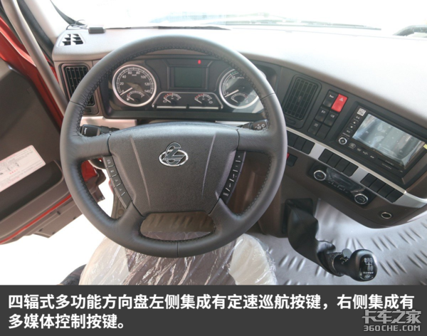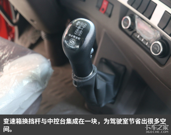 变速箱换挡杆的布置方式非常独到,和中控台集成在一块,同时因为驾驶室采用平地板设计,驾驶员在主副驾之间换乘或活动时会非常方便。