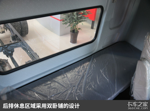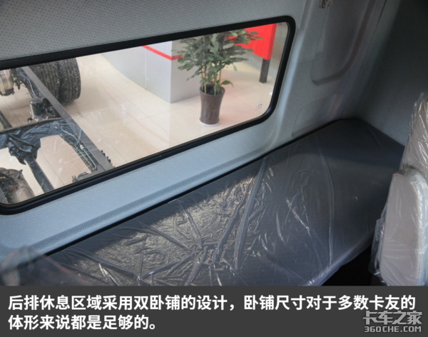 在后排休息区域,这款车采用双卧铺的布置,卧铺尺寸对于多数卡友的体形来说都是足够的。