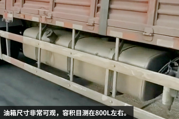 从图片可以看出,这款车油箱尺寸非常可观,目测容积在800L,这个数据在整个中卡市场上非常罕见。
