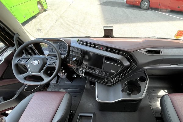中控按键也使用了全新的按键设计,整体风格与自己旗舰产品J7类似,新款按键也与内饰更加搭调,同时也可以有效提升整车的内饰质感。中控部分预留出了挂车制动手柄,能够更加方便驾驶员对挂车进行操作。