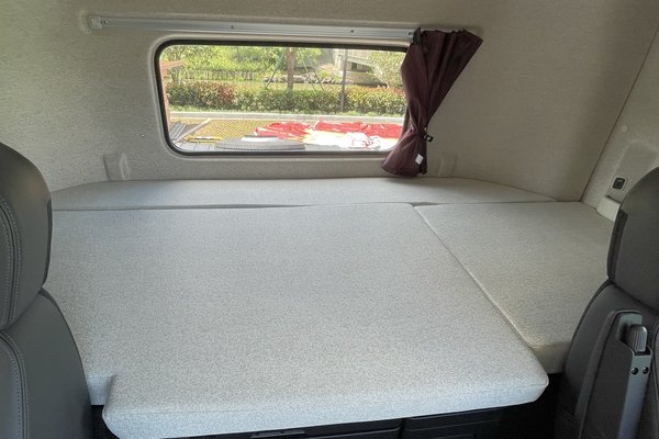 与下卧铺一起提升的还有上卧铺空间,上卧铺除了床垫更加宽大之外,还增加了三个顶置储物格,可以更好放置一些日常行车所需要的的物品。