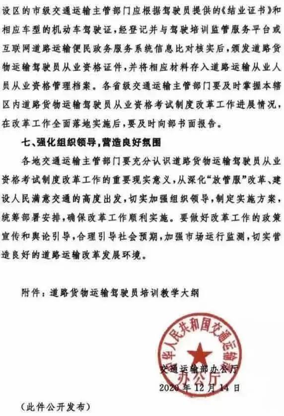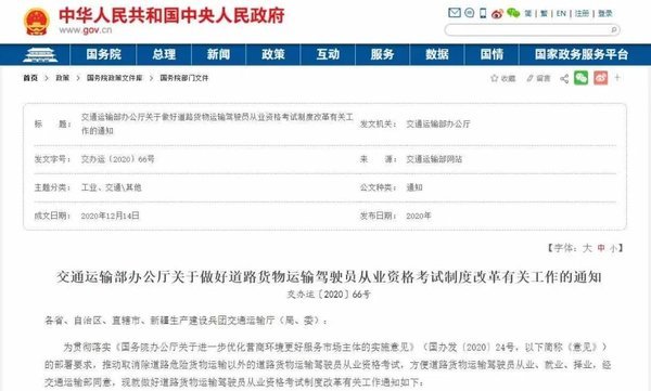 早在2020年12月14日,交通运输部办公厅就明确表示:自2021年3月1日起,不得再组织开展除道路危险货物运输以外的道路货物运输驾驶员从业资格证考试。