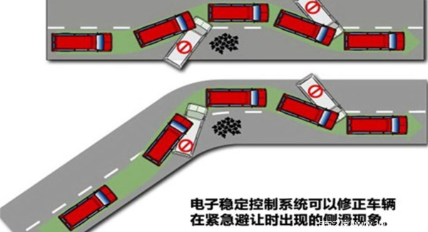 选配ESC汽车电子稳定控制系统,当发现车辆发生转向不足或过度时,系统通过感知转角传感器、横向加速度传感器及轮速传感器信号,控制单个或是多个车轮进行制动,进而调整车辆过弯时的车身姿态,使其行驶能够更加的平稳。