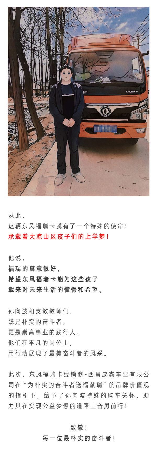 当前位置: 卡车之家 >卡车经销商 > 兰州志达海成汽车销售(凯普特) > 促销新闻 > 一辆东风福瑞卡,满载着大凉山区孩子们的上学梦!