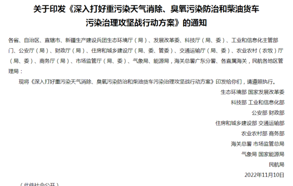 中国商用汽车网讯 11月14日,生态环境部等15部门联合印发《深入打好重污染天气消除、臭氧污染防治和柴油货车污染治理攻坚战行动方案》(以下简称《行动方案》)。