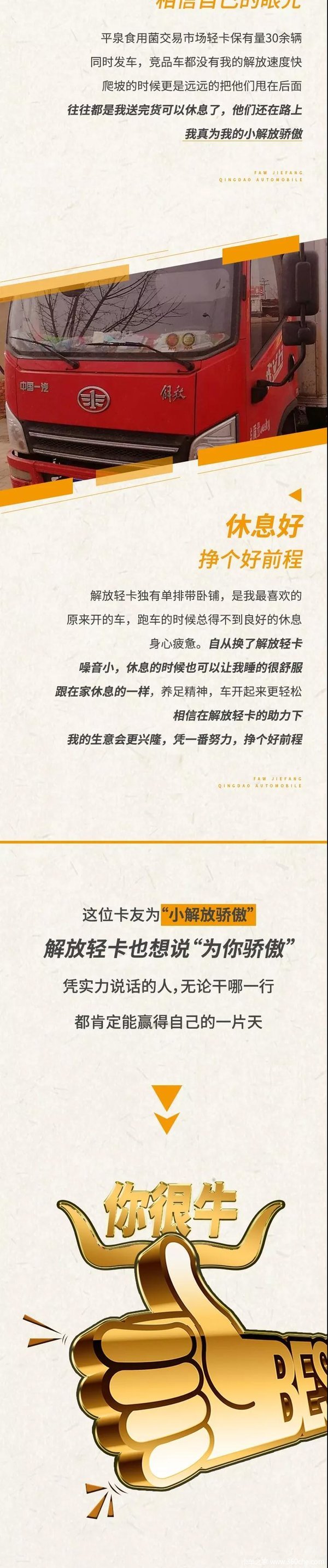 当前位置: 卡车之家 >卡车经销商 > 南阳市腾瑞汽车销售 > 促销新闻 > 【解放轻卡】为你骄傲!你在我心中很牛!