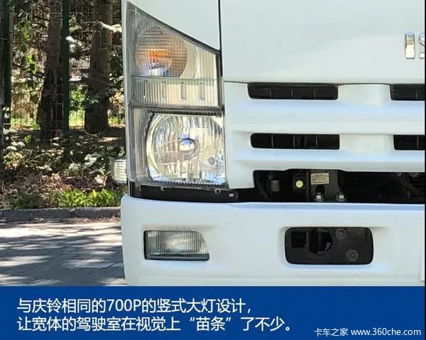 与庆铃相同的700P的竖式大灯设计,与中网相互呼应,让宽体的驾驶室在视觉上“苗条”了不少。